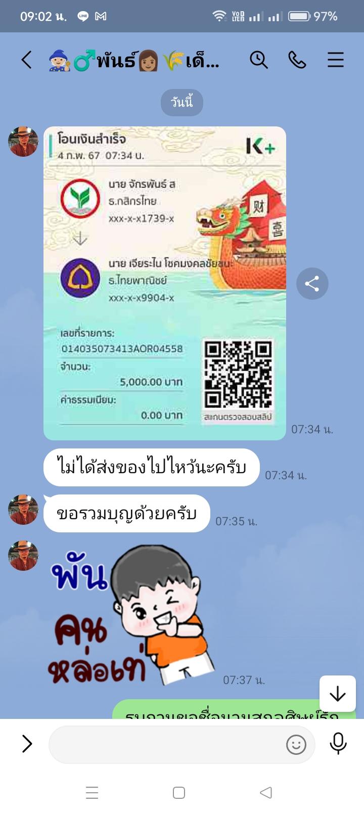 - โอนเสร็จแจ้งยืนยันสลิบ ส่งมาทางไลน์ที่....