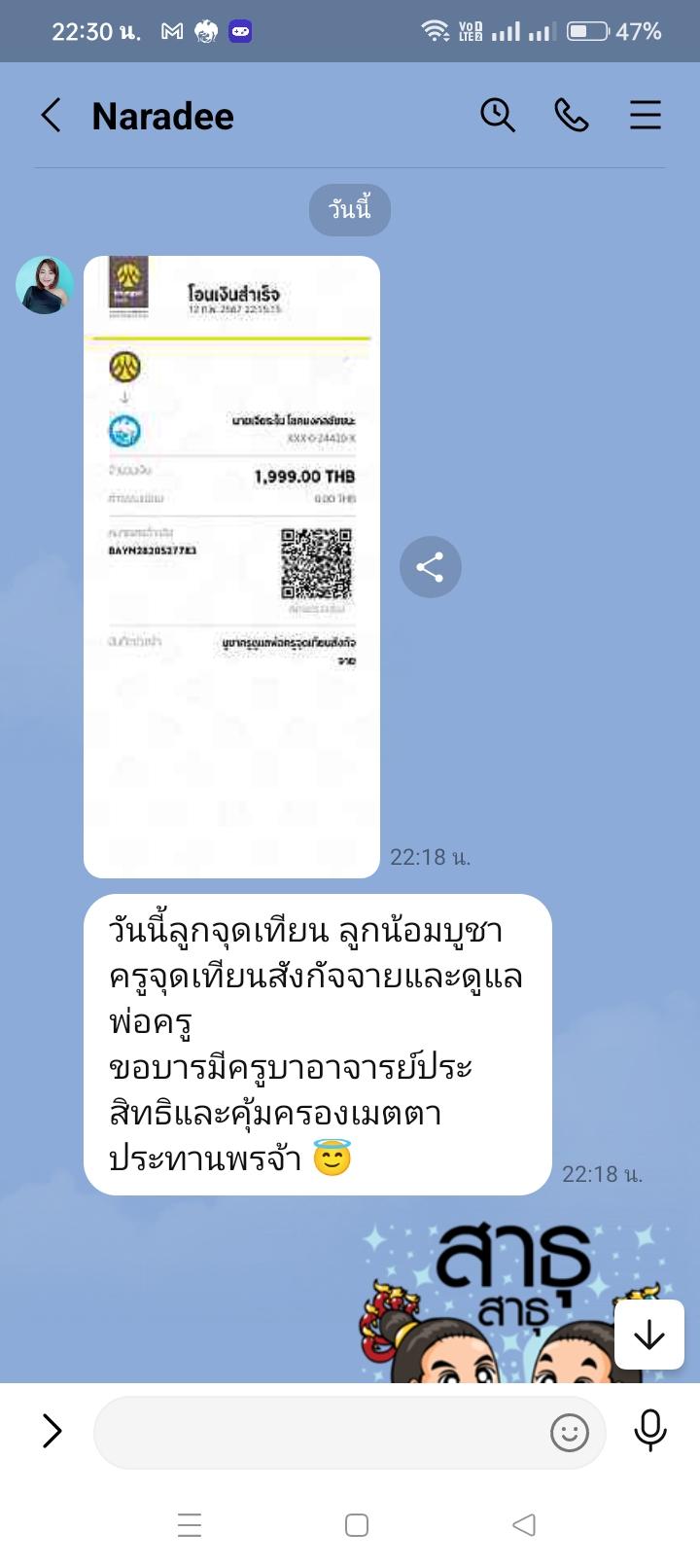 ❤ ศิษย์รัก ที่มีนามว่า... "อาจารย์ ชญาณิศ พิศพาน" (อ.น้ำฝน นาคราชพยากรณ์) ได้โอนปัจจัยมาดูแลครู อีกครั้ง เป็นครั้งที่ 30 ด้วยว่าในทุกครั้งที่ศิษย์รัก "อาจารย์ ชญาณิศ พิศพาน" (อ.น้ำฝน นาคราชพยากรณ์) จะใช้วิชาที่ได้เรียนกับครู อันได้แก่ "วิชาเทียนแขนงต่าง" เพื่อทำการจุดให้กับลูกดวง ก็ได้ทำการโอนปัจจัยมาดูแลครูก่อนเวลาในการจุดเทียนในทุกครั้ง พร้อมทั้งขอพรครูก่อนในทุกครั้ง ถือว่าเป็นศิษย์ที่น่ารัก และฉลาดมาก ในการขอรับพรแรงครู อันส่งผลไปสู่ความสำเร็จที่ยิ่งใหญ่ของศิษย์