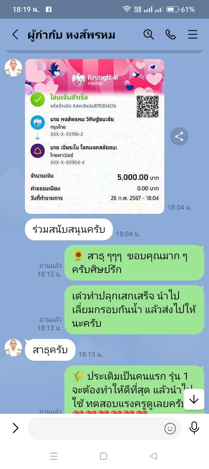 🌻 มีท่าน "อาจารย์ พ.ต.อ.หงส์พรหม วิศิษฐ์ชนะชัย" ได้ประเดิมสนับสนุนบูชาครูเครื่องรางครูมาเป็นท่านแรก ครูขอขอบคุณเป็นอย่างยิ่ง และครูขออวยพรให้ท่าน "อาจารย์ พ.ต.อ.หงส์พรหม วิศิษฐ์ชนะชัย"