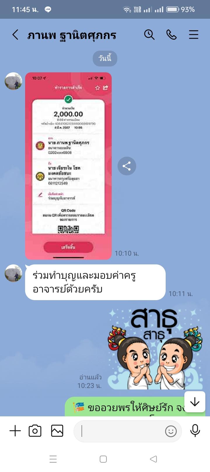 ☀ศิษย์รัก ศิษย์เอก ของครู "อาจารย์ภานพ ฐานิตศุภกร" เป็นเจ้าของโรงงานกรอบรูปไม้เกาหลีเจ้าแรกของประเทศไทย "บริษัทแฮปปี้กรอบรูป 168" คลอง 4 ปทุมธานี "อาจารย์ภานพ ฐานิตศุภกร" วันที่ 4 มีนาคม 2567 ได้ทำการโอนปัจจัยมาดูแลครูอีกครั้ง ซึ่งศิษย์ท่านนี้ได้ดูแลครูด้วยดีต่อเนื่องมาเป็นระยะเวลายาวนานร่วม 20 ปี แบบเสมอต้นเสมอปลายมิเคยขาด ครูจึงขอขอบคุณศิษย์รักมาอีกครั้ง