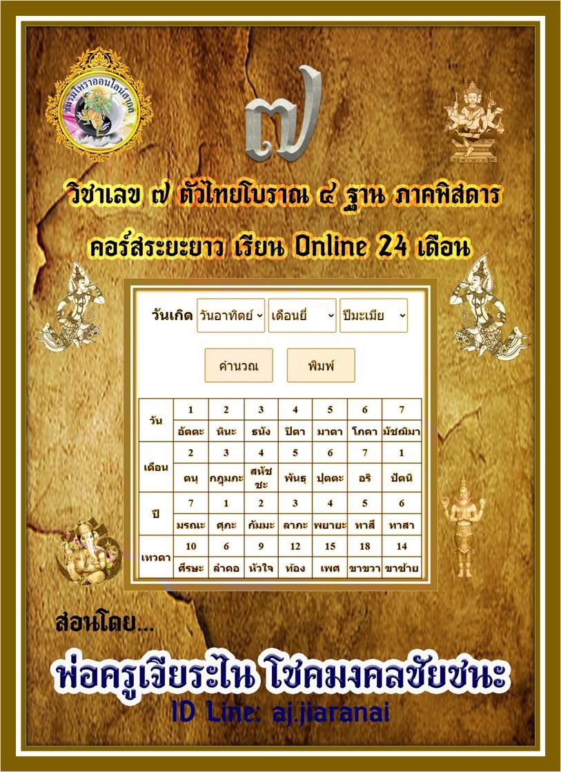 🚩 คอร์สระยะยาว 24 เดือน หลักสูตร "เลข ๗ ตัวไทยโบราณ ๔ ฐาน ภาคพิสดาร" ชั้นตรี, ชั้นโท, ชั้นเอก