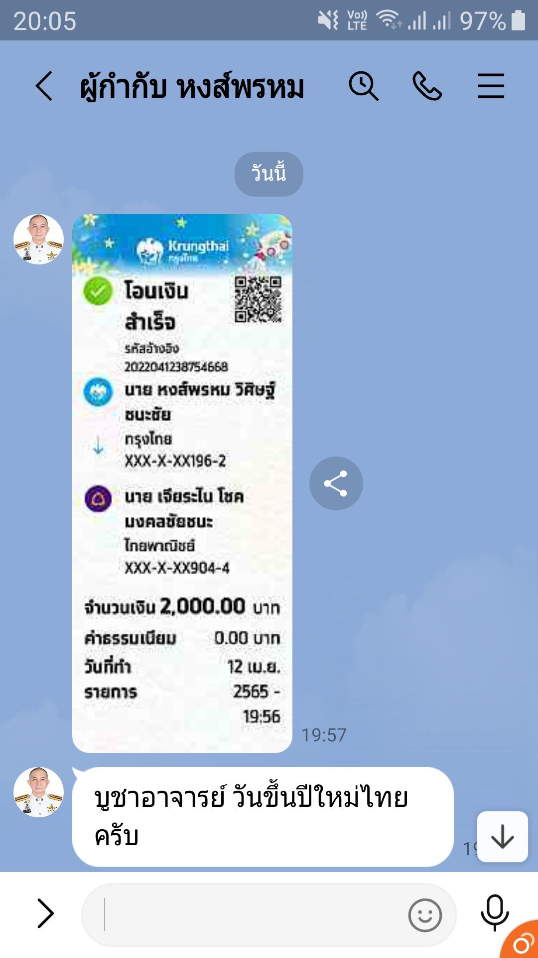 • 💝 วันนี้ศิษย์รัก ศิษย์ยอดกตัญญู ที่มีนามว่า... "อาจารย์ พ.ต.อ.หงส์พรหม วิศิษฐ์ชนะชัย" ได้โอนปัจจัยมาดูแลครู เนื่องด้วยวันปีใหม่ไทย ปี 2565 ครูขอขอบคุณศิษย์รักเป็นอย่างยิ่ง และเนื่องด้วยวันนี้เป็นวันมงคลอย่างแท้จริง ครูจึงขออวยพรในทุกสิ่งมิ่งมงคล ส่งพรให้ไปถึงศิษย์รักในทันใดมิรอช้า ขอให้พรครูรักษาดูแลศิษย์นิมิตอันเป็นมงคลสง่ายิ่ง ขอให้บุญบารมีทั่วสารทิศและเทวาทั่วฟ้าดิน ช่วยกันหนุนพรครูส่งถึงศิษย์เป็นมงคล ขอให้ศิษย์มียศศักดิ์ การงาน การเงิน รุ่งเรื่องทันทีมิรอช้า ขอให้ศิษย์จงได้มาในทุกสิ่งที่คิดหวัง ขอให้ได้โดยทันใดรวดเร็วจัง ขอให้สุขสมหวังในทุกเรื่องด้วยพรครู สาธุ ๆๆๆ