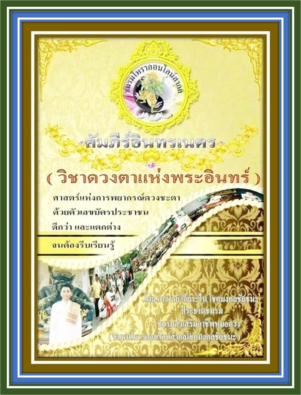 👁 สุดยอดไฟล์ตำรา “คัมภีร์อินทรเนตร” เป็นสุดยอดหลักวิชาการทำนายดวงชะตา+การเปิดดวงแก้ไขดวงชะตาจากร้ายให้กลายเป็นดี ภาคพิสดาร+การปลุกเสกวัตถุมงคลกุมารทองให้เข้มขลัง เป็นไฟล์ตำราที่สอนให้คนที่ไม่มีความรู้ในเรื่องของการพยากรณ์ดวงชะตาแม้แต่นิดเดียวให้กลายเป็นอาจารย์นักพยากรณ์ดวงชะตามืออาชีพได้ และช่วยส่งเสริมในให้ผู้ที่เป็นนักพยากรณ์ดวงชะตามืออาชีพอยู่แล้ว ให้กลายเป็นสุดยอดซุปเปอร์อาจารย์ และยังมีความรู้ด้านการเปิดดวงแก้ดวงร้าให้กลายเป็นดวงดี พร้อมวิชาด้านคาถาอาคมและการปลุกเสกกุมารทอง ไฟล์ตำรามีขนาดประมาณ 164 หน้า A4 หรือประมาณ 300 กว่าหน้าพ็อคเก็ตบุ๊ค ด้วยค่าบูชาครูรับไฟล์ตำราเพียง 299.บาทเท่านั้น รายละเอียดเนื้อหาคร่าว ๆ ภายในไฟล์ตำรามีดังต่อไปนี้.....