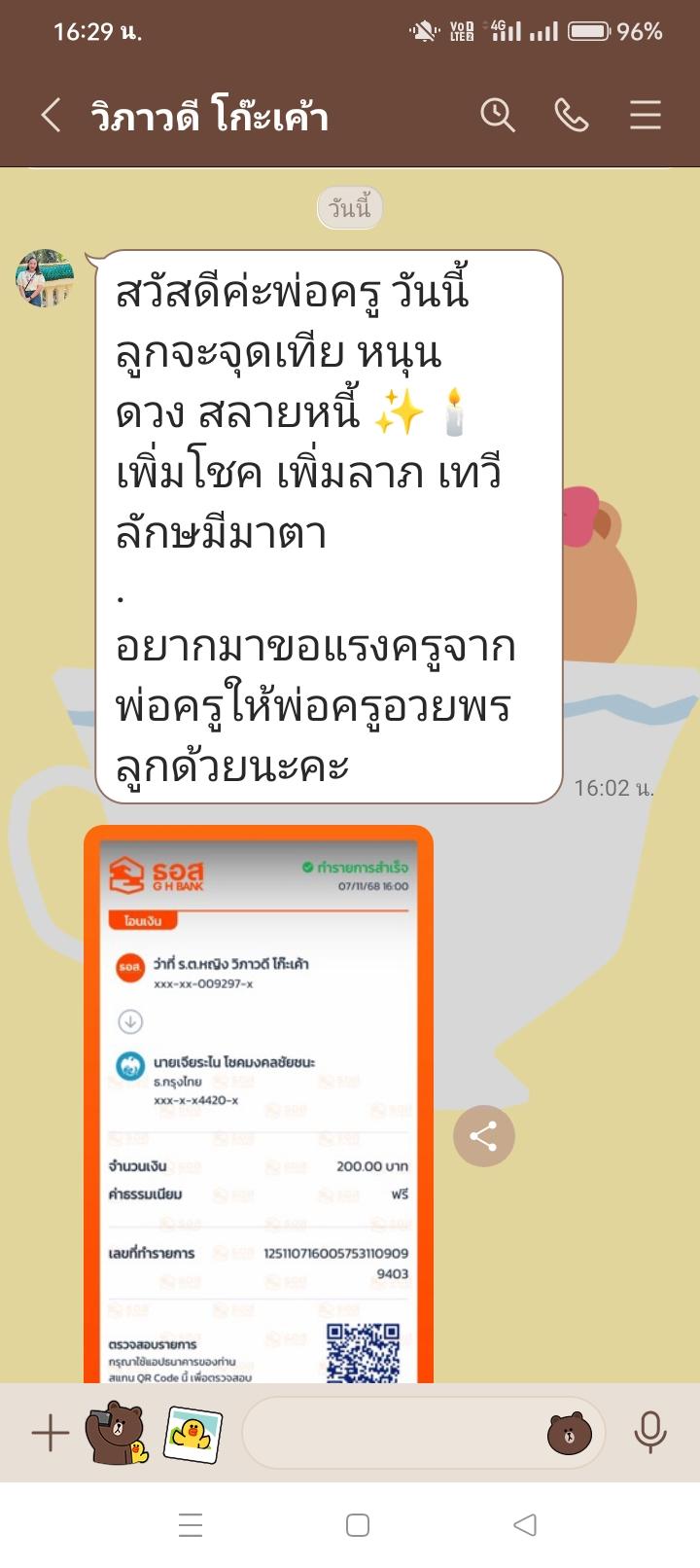 🌱 วันศุกร์ ที่ 7 พฤศจิกายน 2568 ศิษย์รัก ผู้มีนามว่า "อาจารย์วิภาวดี โก๊ะเค้า" ได้โอนปัจจัยบูชาครู ขอพรครู ในการใช้วิชาครูจุดเทียนชัยหนุนดวง สลายหนี้ ขอให้พ่อครูอวยพรความสำเร็จให้ พ่อครูจึงขออวยพรให้ศิษย์รัก จงมีโชคและมีชัย ดังพรต่อไปนี้ส่งให้แก่ศิษย์ด้วยเมตตา.... 🙏 สาธุ ๆ ด้วยพรบารมีอันศักดิ์สิทธิ์ ขอบุญฤทธิ์จงส่งเสริมและรักษา ให้หนุนนำความสำเร็จในวิชา ให้ศิษย์รักจงได้มาซึ่งโชคชัย ชนะทั้งเรื่องเงินเรื่องงาน สุขภาพ ขอให้ปราบทุกข์โศกโรคทั้งหลาย ให้สูญสิ้นดวงอับ รับแต่โชคดีตลอดไป คิดสิ่งใดจงได้สมใทุกเรื่องด้วยพรครู สาธุ ๆ พรครูประสิทธิฯ💗💗💗💗 ✨ พรจากใจ.. พ่อครูเจียระไน โชคมงคลชัยชนะ 🌷 ID Line: aj.jiaranai